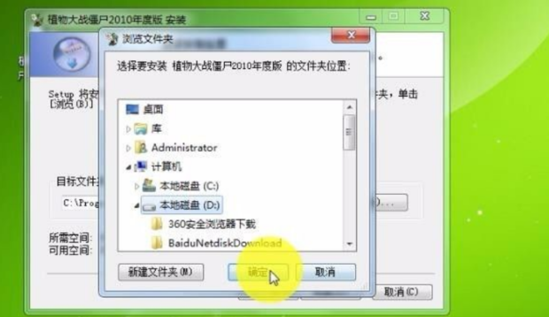5、选择安装路径,单击浏览,选择计算机D盘,单击确定。