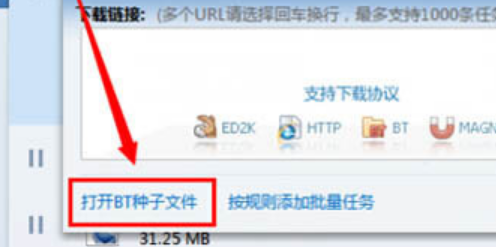2、选择打开bt种子按钮。