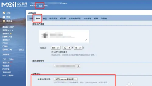 具体设置方法为:进入QQ邮箱网页版,点击右上角设置按钮,进入设置中心后,点击顶部账户栏目,进入。进入后点击注册英文邮箱,即可注册您姓名的邮箱地址了。