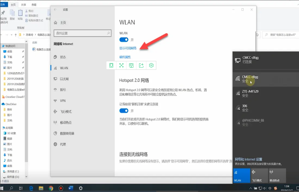 7、点击“显示可用网络”,选择我们想要连接的WiFi,输入密码连接。