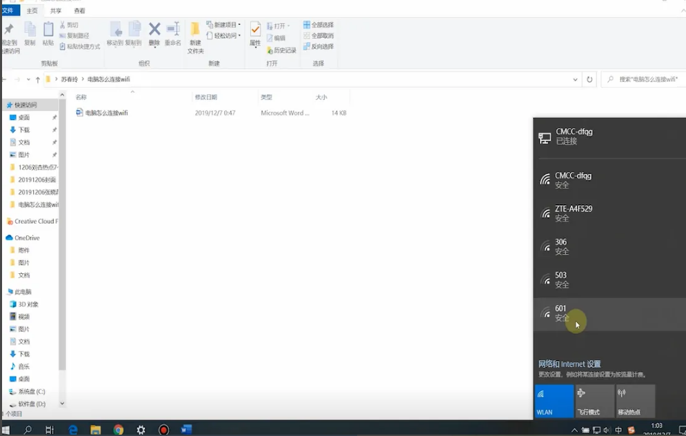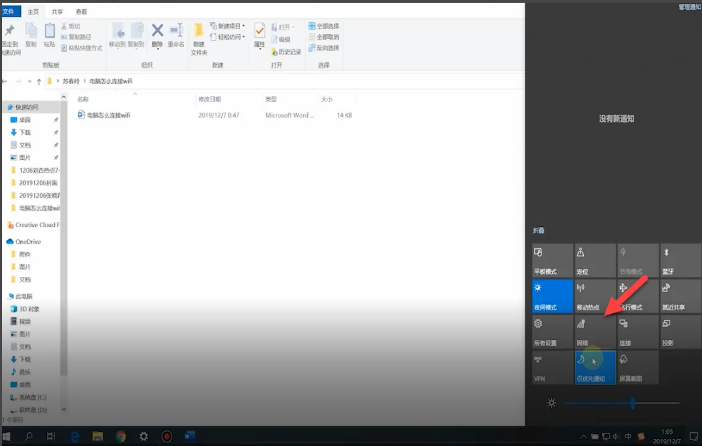 2、鼠标点击通知栏中的“网络”,进入WiFi选择页面。