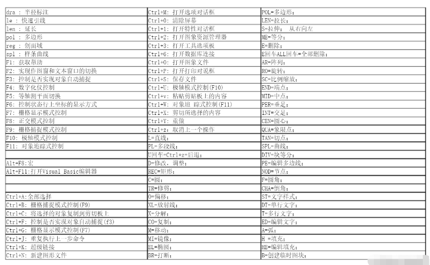 最全的cad快捷键命令大全