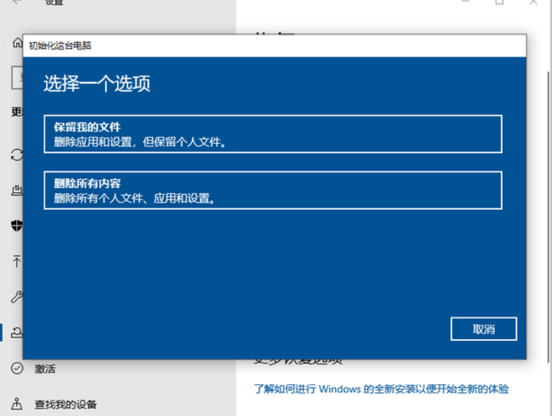 3、点击保留文件那个选项就可以开始执行恢复出厂设置了。