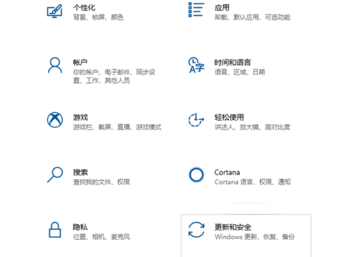 1、在开始菜单图标,然后选择设置图标,接着在这里面选择更新和安全进入。