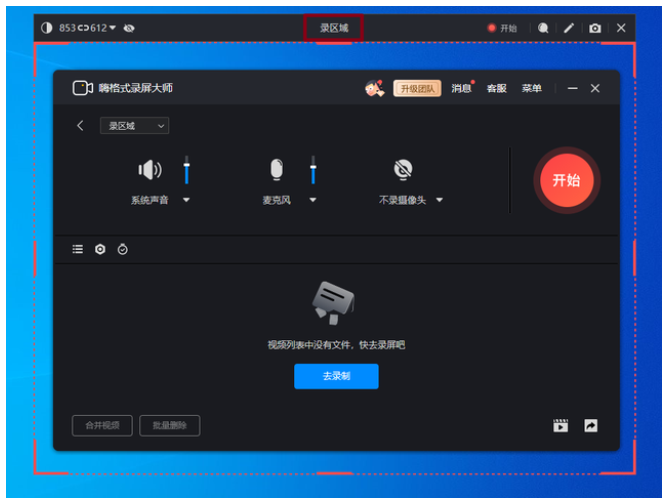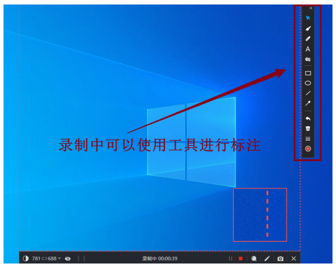 3、最后点击工具栏最右侧的“录制按钮”即可录制整个屏幕。