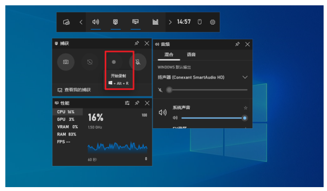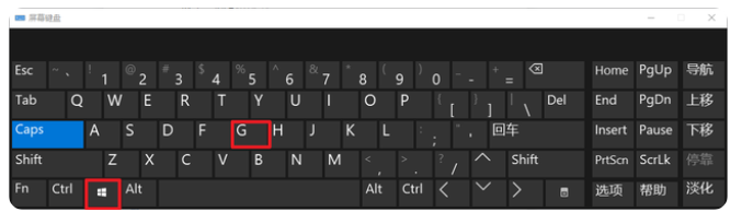 1、在键盘上按快捷键【Win+G】调出录屏弹窗。