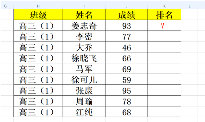 4、然后直接回车确定,就可以在表格的旁边显示出成绩排名。