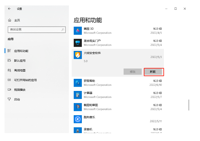 4、找到火绒安全软件,选中它,点击卸载即可。