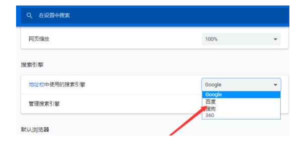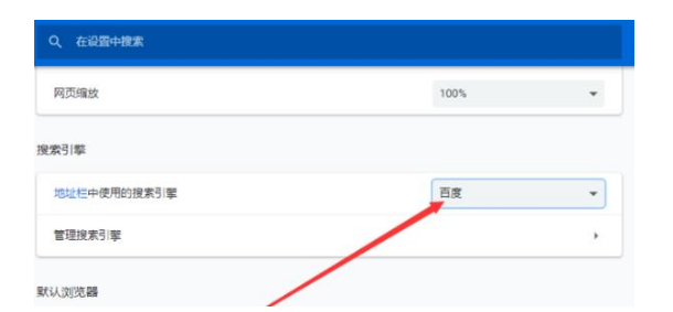 3、随后将搜索引擎设置为“百度”。