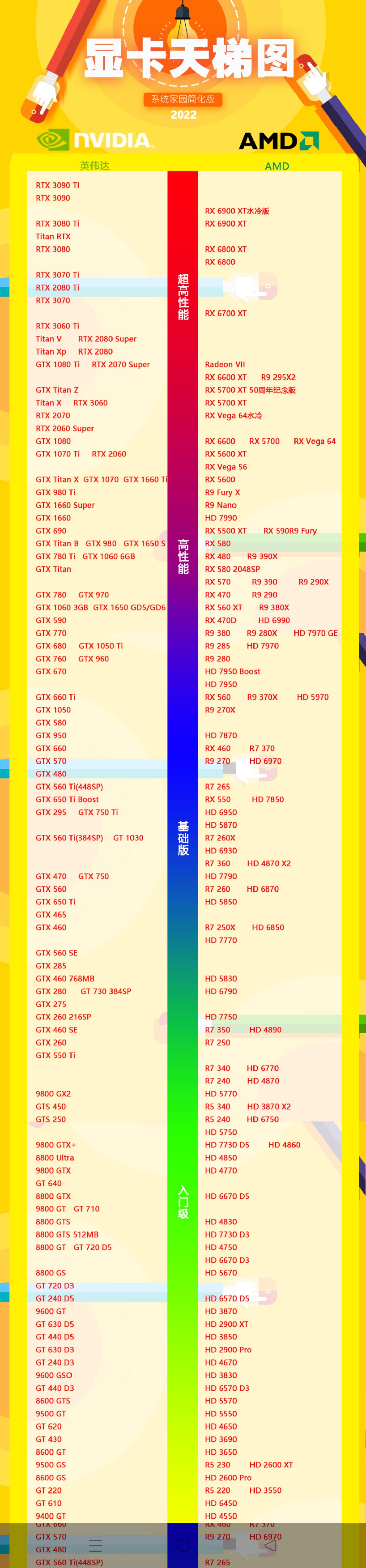 2022年系统家园简化版显卡天梯图