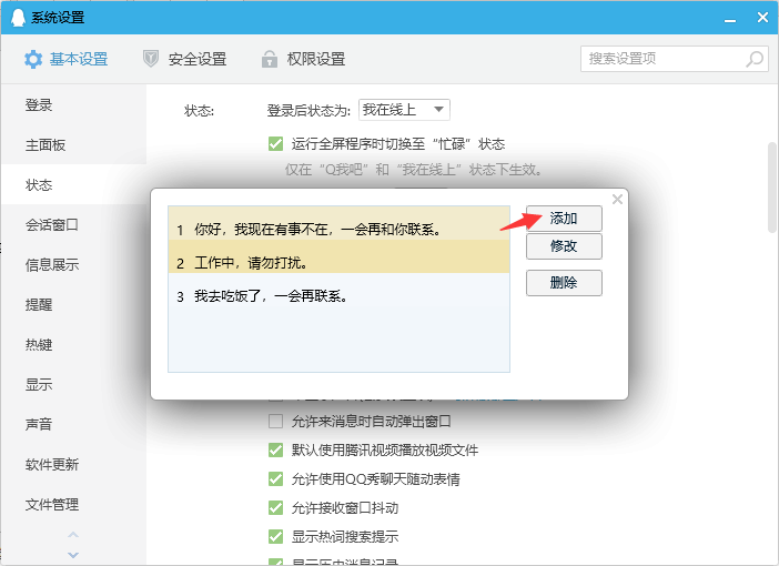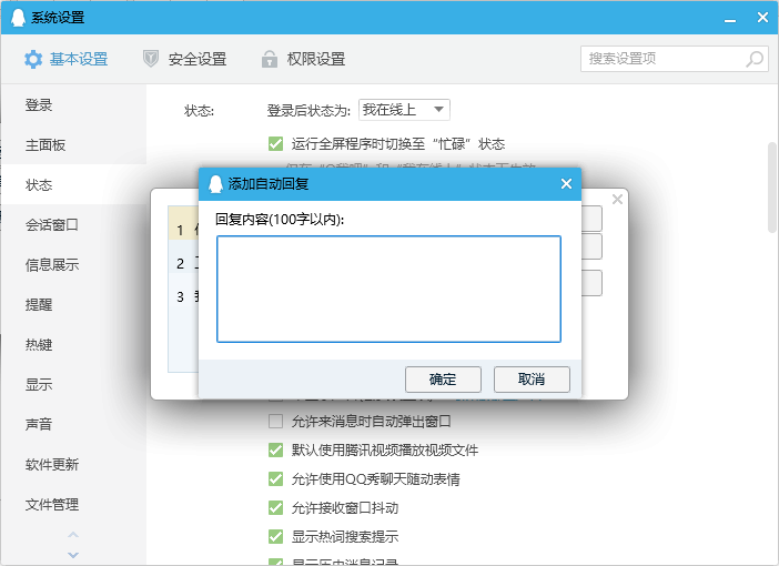 以上便是设置qq自动回复的方法步骤,操作比较简单,只需找到设置内的状态栏进入,找到自动回复设置自己想要的内容即可。