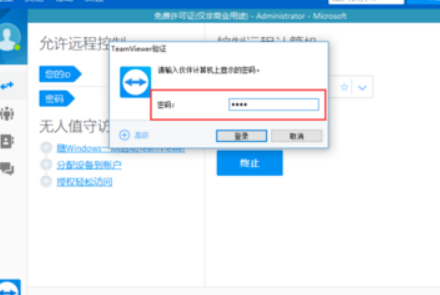 4、在TeamViewer验证里,输入远程操控电脑id对应的密码点击登录,就可以远程控制电脑了。