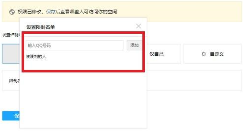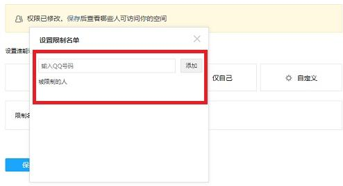 如果想对单个指定QQ用户限制访问,那就在“所有人”模式中的黑名单中添加该QQ号即可。