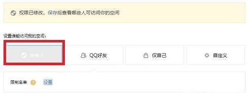 1、“所有人”模式:这是QQ空间默认模式,该模式情况下,任何QQ用户都能访问自己的QQ空间,即便陌生QQ用户也可以访问。