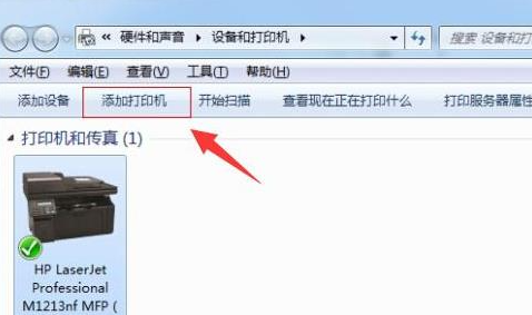 2、单击上方的添加打印机。