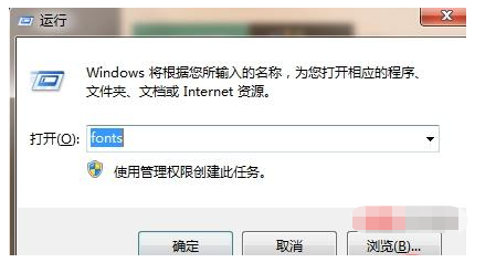 2、随后在输入框中输入fonts即可打开字体文件夹,就找到了win7系统字体所在处。