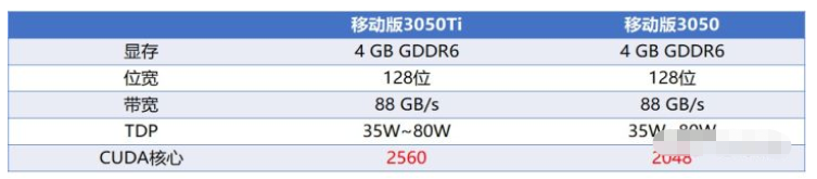 1、 RTX 3050与RTX 3050Ti区别RTX 3050与RTX 3050Ti的区别在于CUDA核心数量不一样,RTX 3050Ti核心数多512。RTX 3050Ti的笔记本电脑显卡功耗范围是35W~80W,利用Dynamic Boost 2.0技术,功耗释放可以提升15W,所以RTX 3050Ti有80W和95W两个版本。