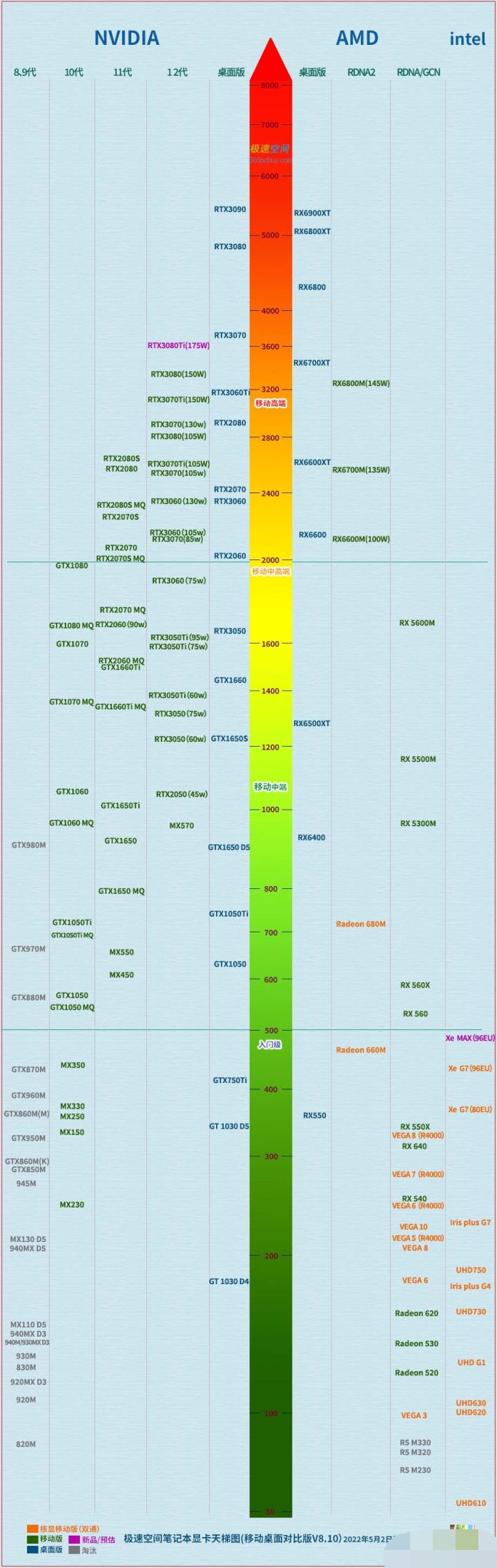 2022年8月更新的笔记本电脑显卡天梯图分享
