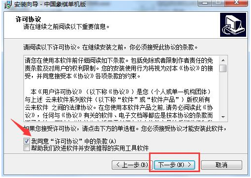 2、我们勾选“我同意许可协议中的条款”,点击“下一步”。