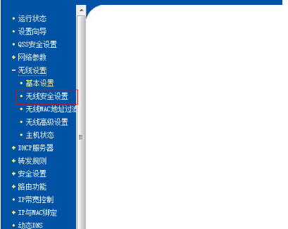 3、这时进入路由器的服务器,选择无线设置下列的无线安全设置。