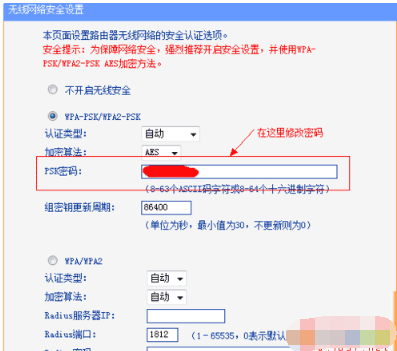 4、在无线安全中PSK密码一栏输入想要修改的wifi密码。