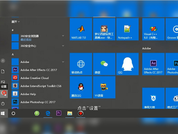 第一步:点击“开始菜单”找到设置选项;