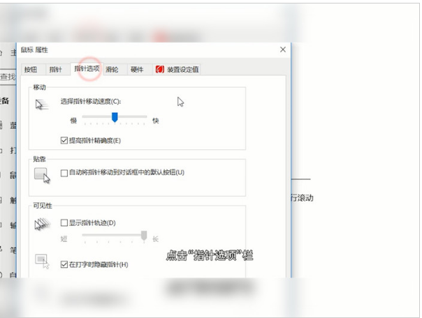 第六步:点击“指针选项”栏,即可在“选择鼠标移到速度”处设置dpi了。