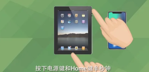 1.iPad和iPhone一样,按下“电源键和home键”半秒钟。