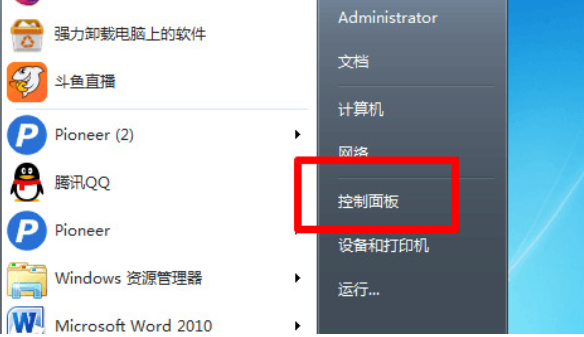 1.首先打开任务栏,选择“控制面板”;