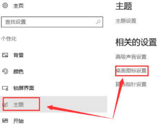 2.在页面找到主题选项,点击桌面图标设置。