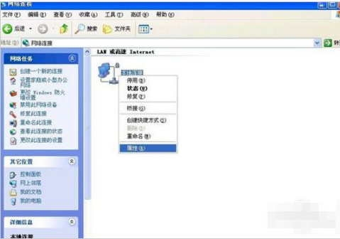 3、点击本地连接,打开的菜单选择“属性”命令。