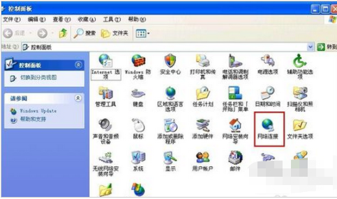 2、在“控制面板” 中点击进入“网络连接”。