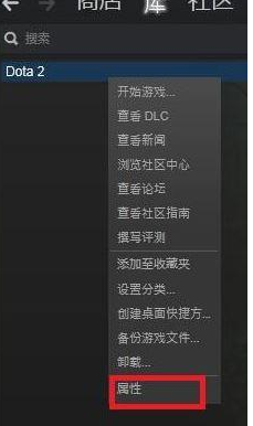1、打开steam,鼠标右击Dota2游戏选择属性;