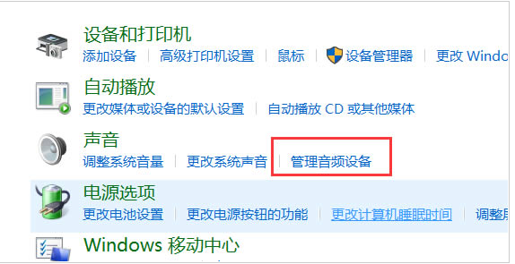 2、点击管理音频设备。