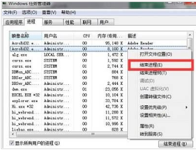 2.选到非必要的进程的话,点击结束进程,即可减少CPU负荷即可给CPU降温。
