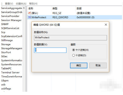 6、鼠标点击WriteProtect。 把WriteProtect的数值数据设置为0,点击确定之后插入U盘就可以啦。