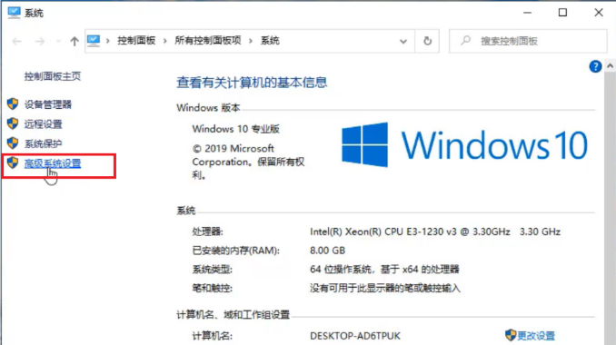 7、进入电脑之后,使用鼠标点击【此电脑/计算机】,弹出菜单界面之后,选择【属性】,进入面板,点击【高级系统设置】。