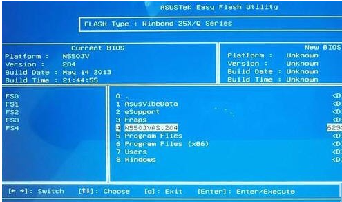 2.通过方向键选择分区,按回车进入分区目录选择BIOS文件。