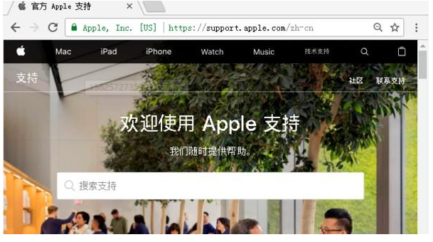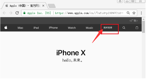 2、进入苹果官网之后,在界面中打开技术支持。