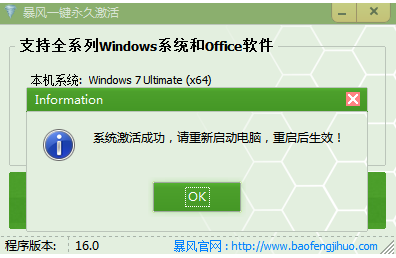 软件版本:暴风激活v16.0