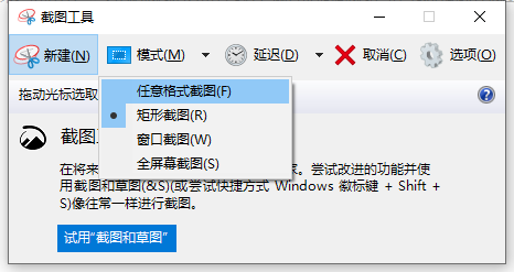 2、打开工具后,点击【新建】,可以选择不同的方式截图,然后就可以保存截图了。