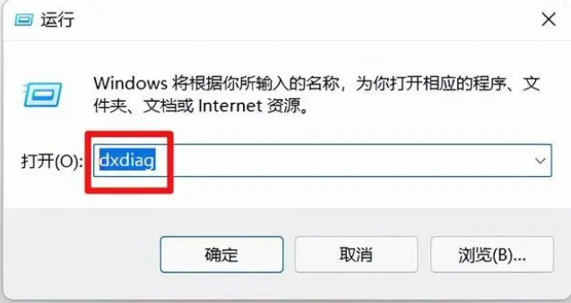 1、同样是使用快捷键“Win键”+“R”打开运行,输入“dxdiag”回车确定。