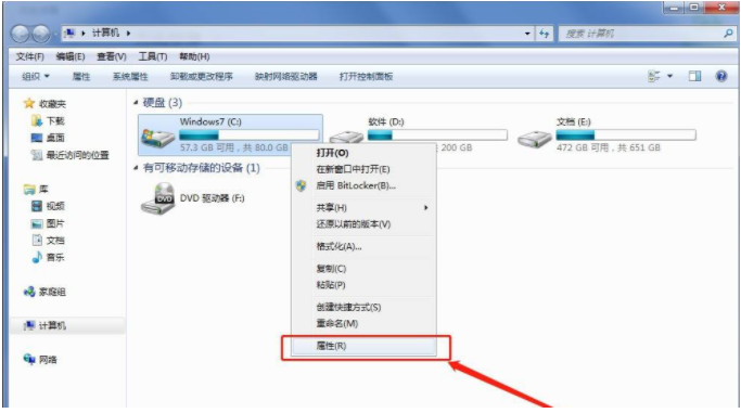 1.右键点击电脑“C盘”,选择“属性”;