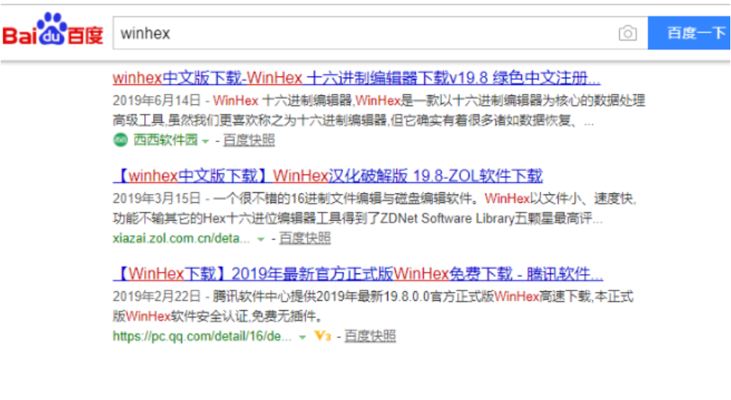 1、打开浏览器搜索winhex软件并下载安装到电脑。