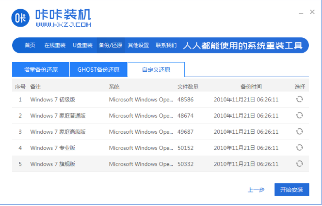2、点击自定义还原,选择刚下载解压好的win10系统镜像,点击下一步即可。