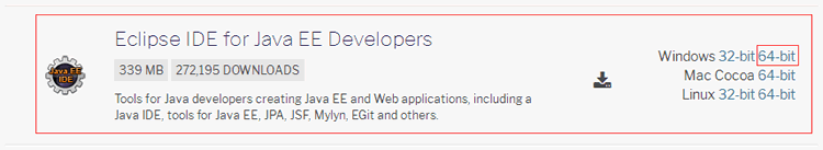 3、 点击 Download Packages,进入 Eclipse 下载页面。从 Eclipse IDE for Java EE Developers 后面选择适合当前系统的版本,这里单击 64 bit 按钮,下载 64 位的安装包,如图 3 所示。