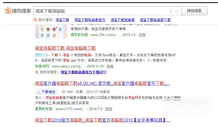 1.在浏览器的搜索栏输入“淘宝下载电脑版”,进入搜索界面。