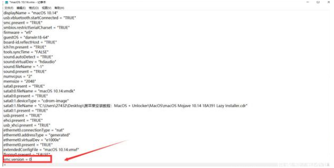 6.在系统中我们找到MacOS的安装位置,点击使用记事本打开macOS 10.15.vmx系统文件。