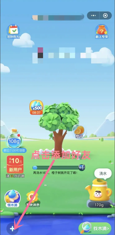 2、进入自己的小美果园,点击左国包下角“添加好友”。