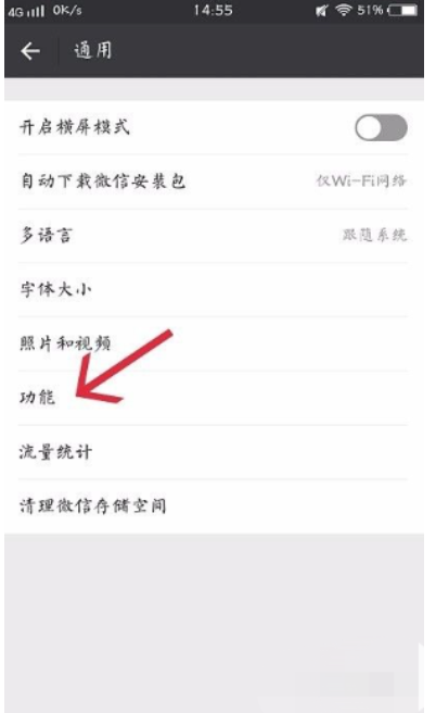 4、在通用的界面中,找到功能,并点击功能,看下图所示,进入下一步骤。